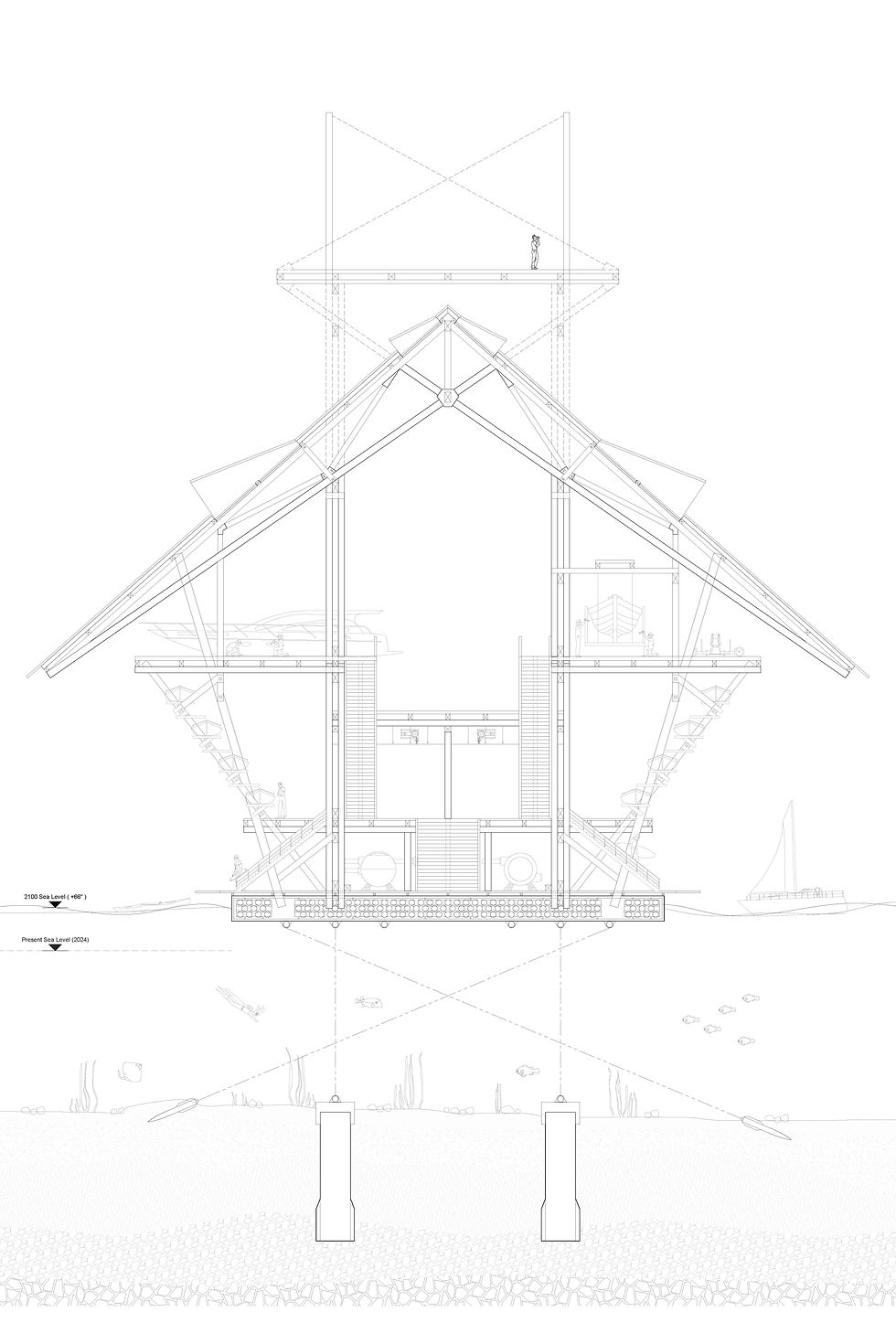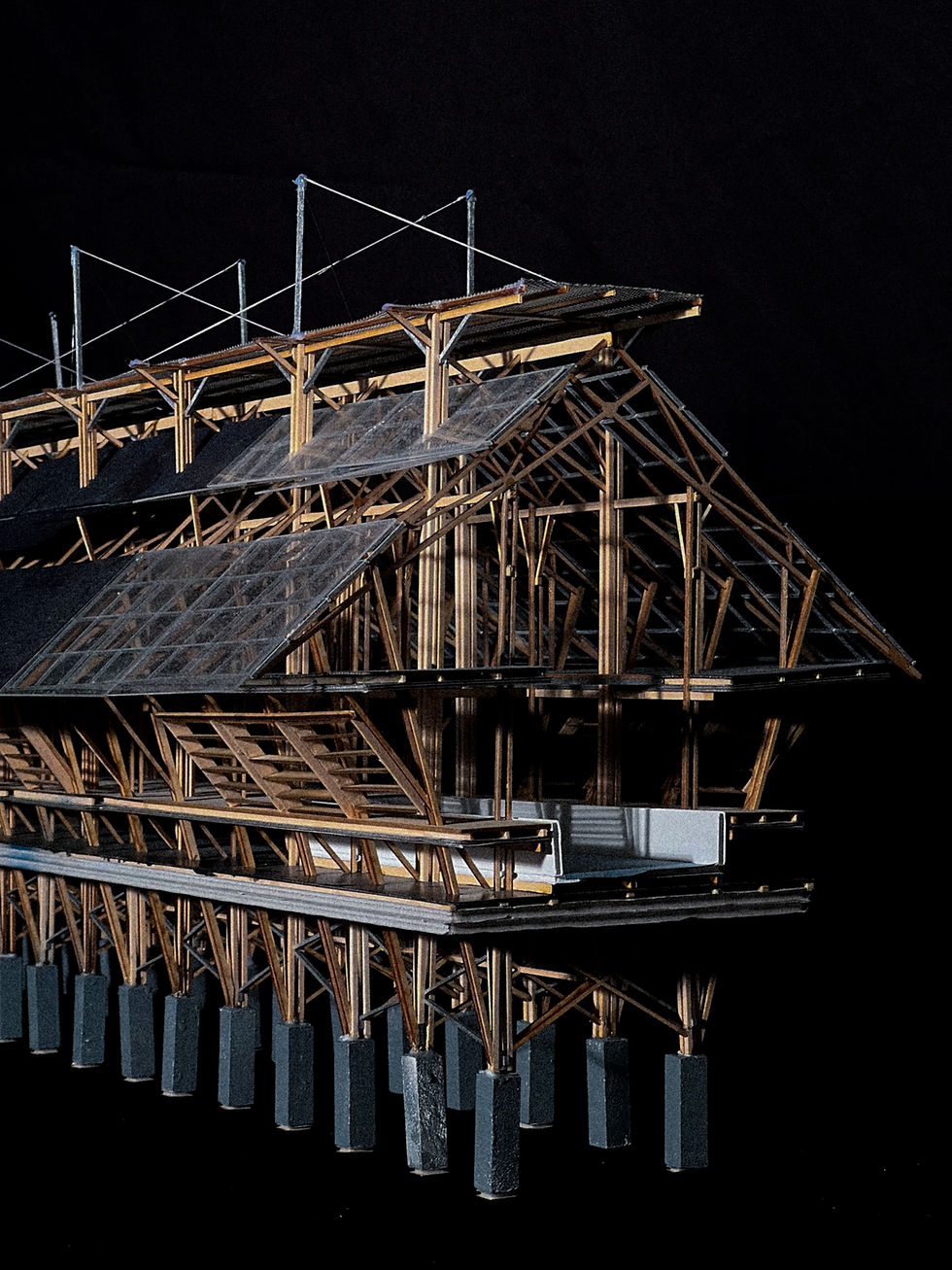 샌프란시스코 Pier 70은 조수간만 차와 해수면 상승으로 인해 반복적인 침수와 구조적 피로도가 높아지는 지역이다. 동시에 산업 변화로 기능을 잃은 항구 창고와 구조물들이 방치되고 있다. 본 프로젝트는 이러한 문제를 해결하기 위해 기존 항만 구조인 Portal Frame System을 재정의하고, Truss와 Wire Tension을 결합해 새로운 구조적 팔림프세스트를 제안한다. 이를 통해 버려진 구조물이 새로운 프로그램을 수용하는 재생 가능한 기반으로 기능하도록 하는 것이 목표다.